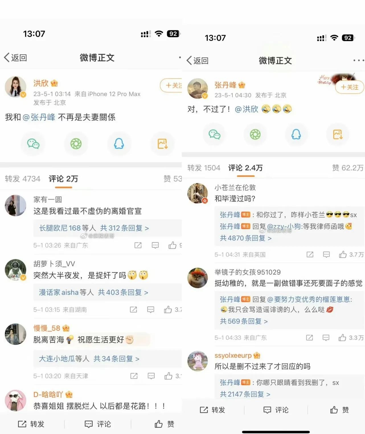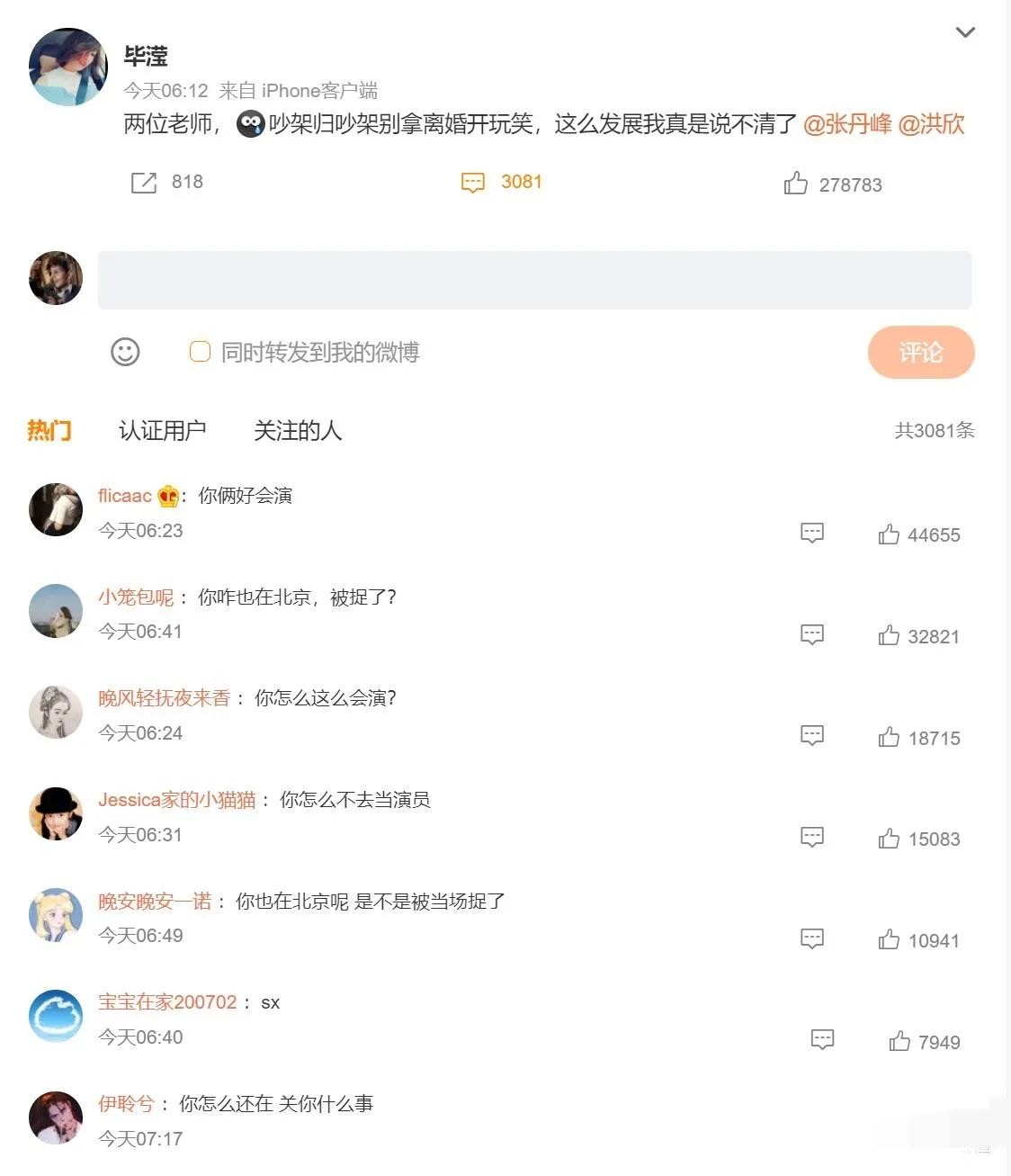 刚开始张丹峰被曝出和经纪人绯闻,洪欣还在帮张丹峰解释,