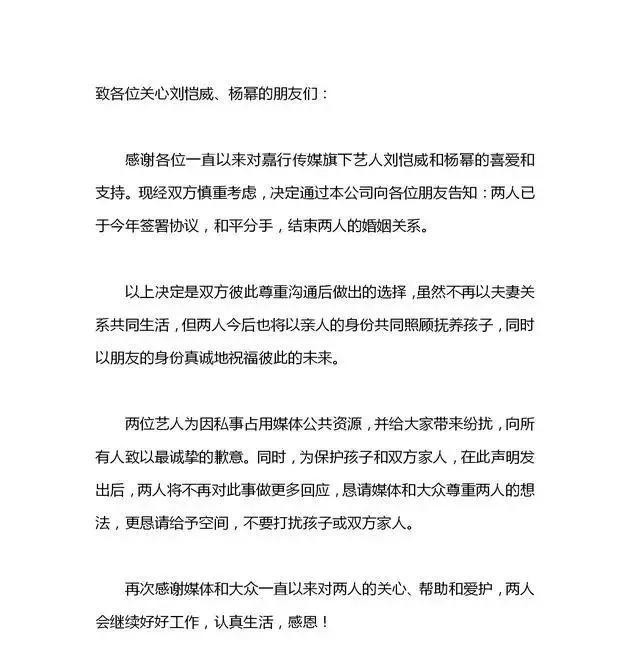 官宣结婚的时候,杨幂还有着小姑娘的俏皮,离婚的时候,双方由经纪公司发声。