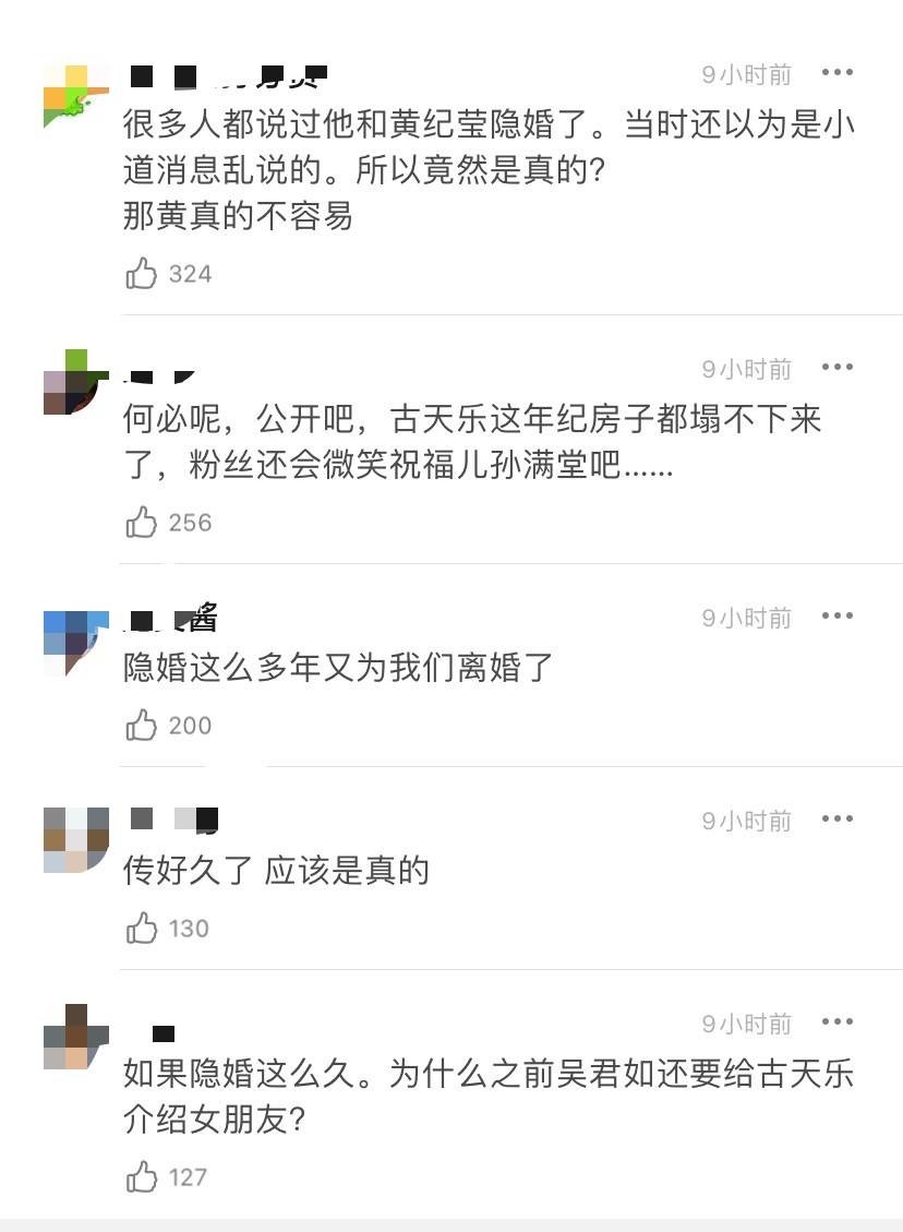 两天前,一位网友在评论区问起了古天乐的感情状况,没想到该娱记语出惊人,直接曝出古天乐已经隐婚生子的消息,称古天乐结婚的对象是黄纪莹,两人还有一个10岁的儿子。
