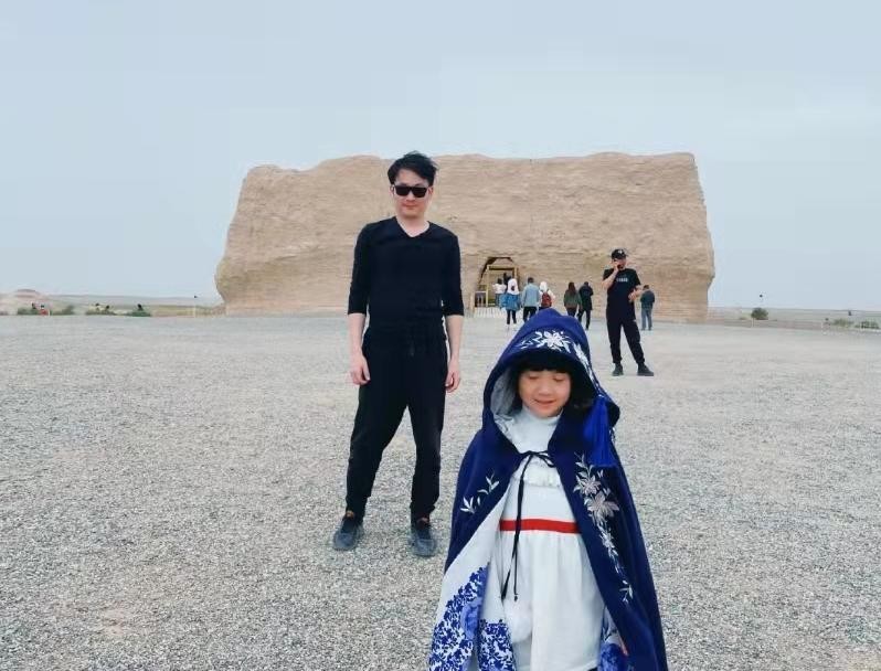 早前史林子和老公带着两个孩子现身敦煌,体验了一把塞外风情。
