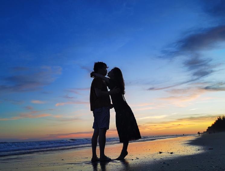 照片中,喻恩泰和老婆在夕阳下深情拥吻,甜到掉牙。史林子双手搭在喻恩泰肩膀上,还踮起脚要亲吻他,即使是老夫老妻了也能这么甜蜜,着实令人羡慕。