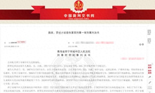青海省西宁市城中区人民法院一审审理查明,2023年5月3日23时许,罗某某在西宁市城中区的家中,与其妻子魏某因琐事发生口角,后被告人对被害人魏某眼睛、耳朵、右侧胸部等部位进行殴打,致使被害人左右耳、眼部、肋骨等部位多处受伤。之后,魏某在医院住院八天。