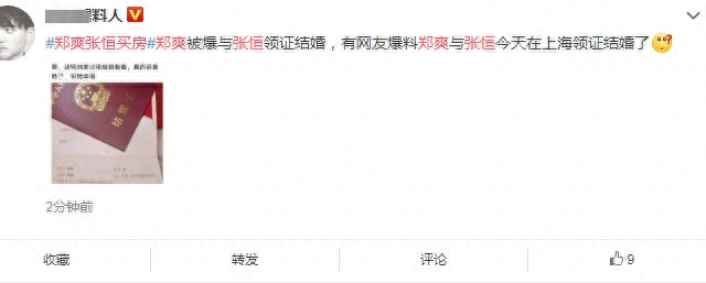 许久没有公开露面的郑爽一露面就来了一个大新闻。刚刚和张恒两个人去买房被炸上热搜,马上结婚证就被网友曝光了。