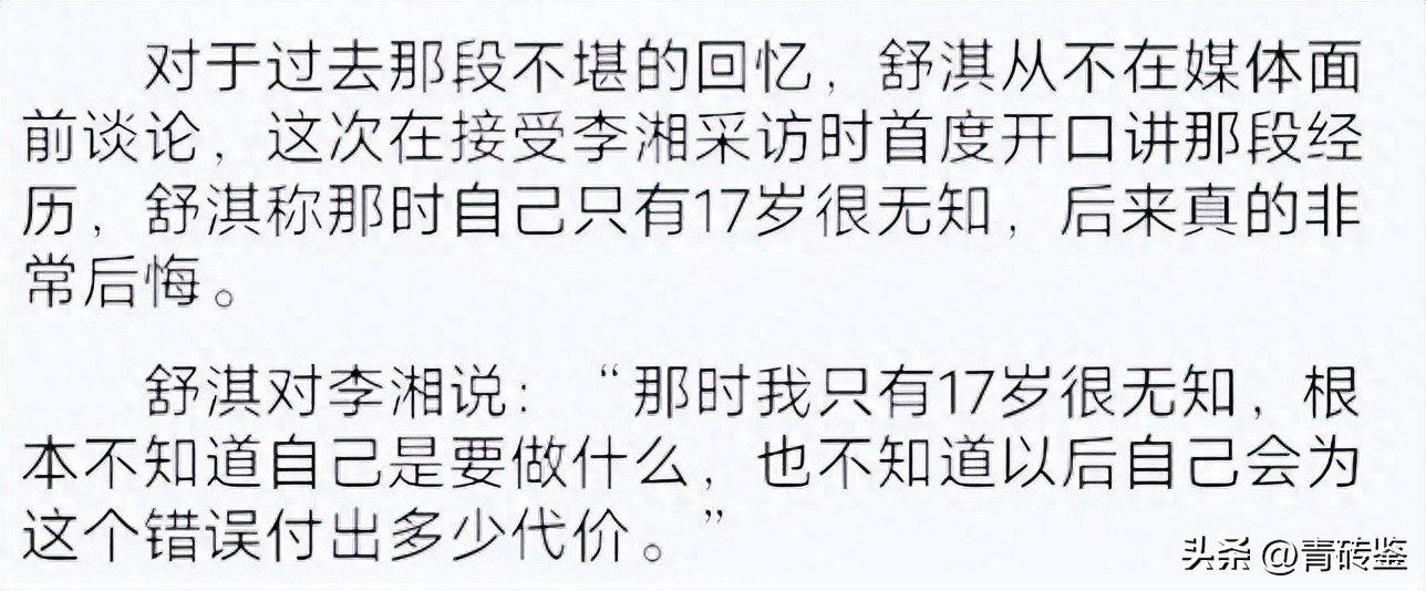 在李湘采访舒淇时,舒淇也坦言17岁的自己太无知,犯了很多错误。
