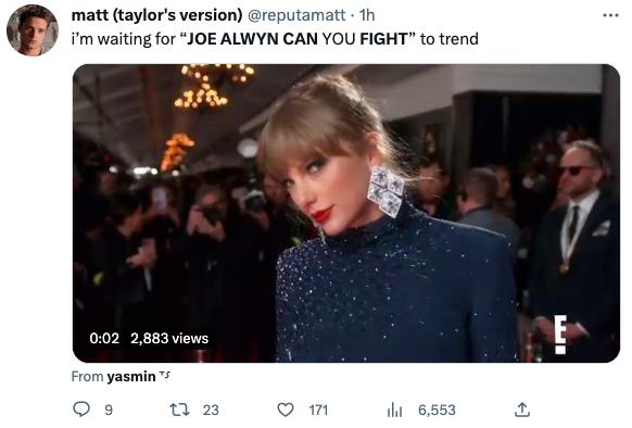我就等着看 "Joe Alwyn 你能打不 " 上热搜呢