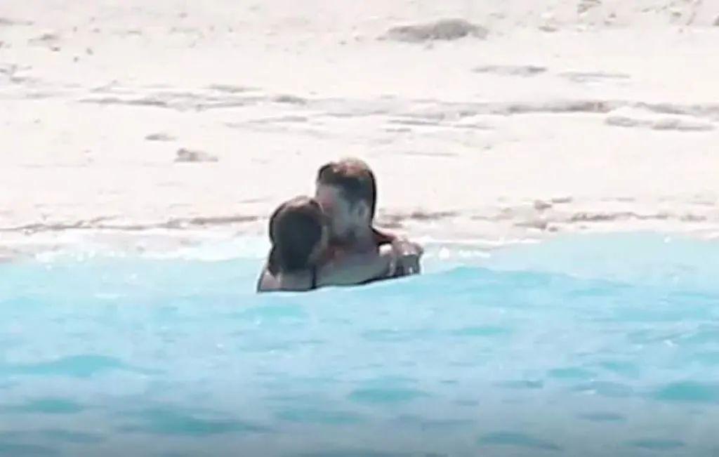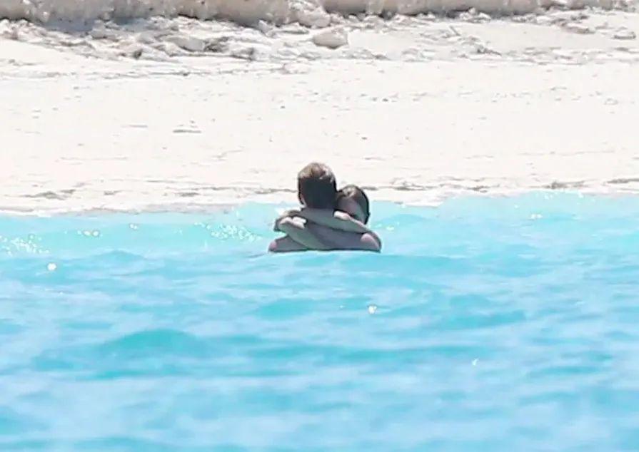 当时俩人在巴哈马度假时的海中拥吻!