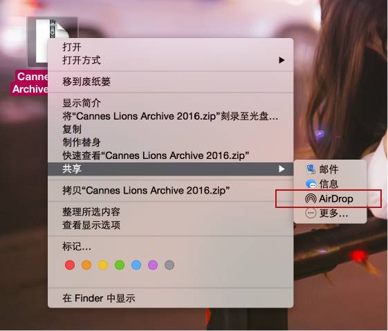 方法二:右键——共享——AirDrop(压缩包也可以传噢!) ▼