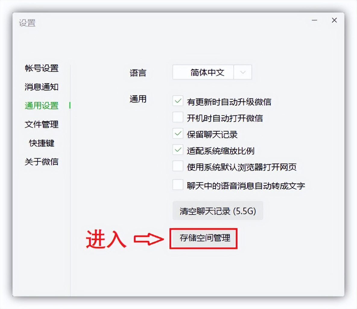 3.返回到微信设置面板,点击「通用设置」-「储存空间管理」;