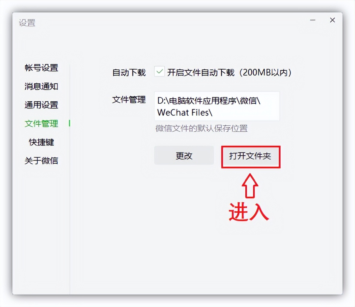 1.微信每天都在使用,日积月累会产生大量缓存文件,打开微信客户端的设置页面,选择「文件管理」,点击「打开文件夹」;