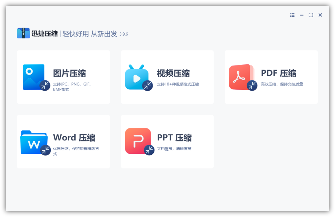 1.在清理磁盘空间的同时,有些重要的大文件不能删,那么可以借助迅捷压缩软件,进行文件无损压缩处理,支持压缩图片、视频、PDF等文件。