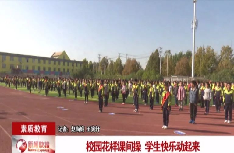 在新兴路小学的操场上,老师带领一千四百多名学生,伴随欢快的音乐节奏,学生们动作协调、表情投入,尽情地演绎新式课间操。