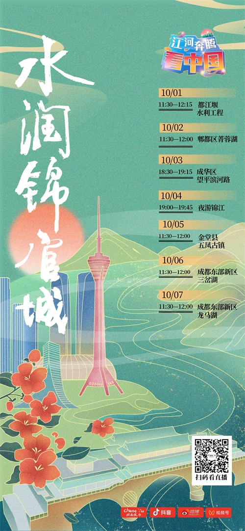 10月1日起,连续七天,成都发布、红星新闻携手江河沿岸成都区(市)县融媒体中心,启动“江河奔腾看中国·水润锦官城” 成都发布政务融媒体大联播。
