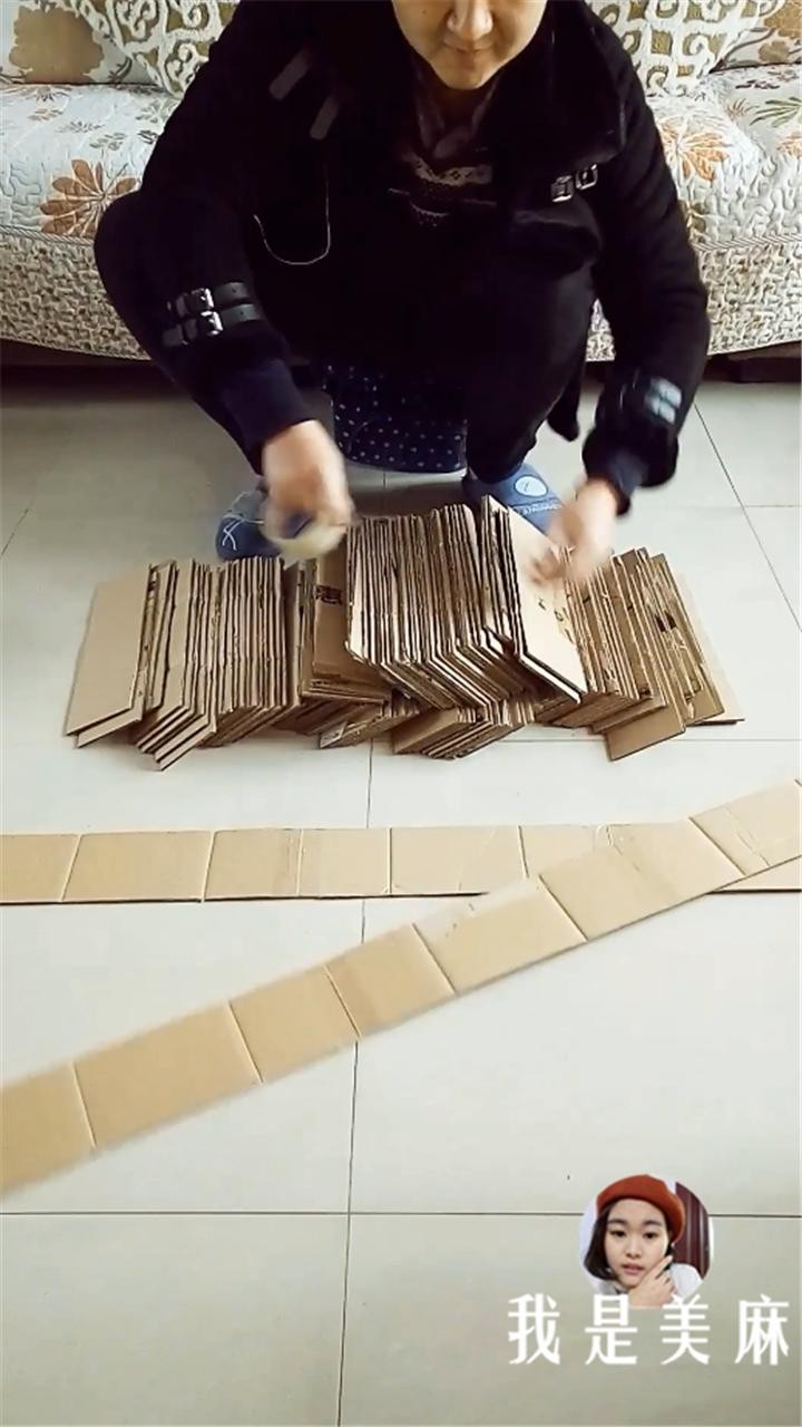 把快递纸箱裁成10*35厘米,最好选用厚度一样的纸箱,需要很多个。
