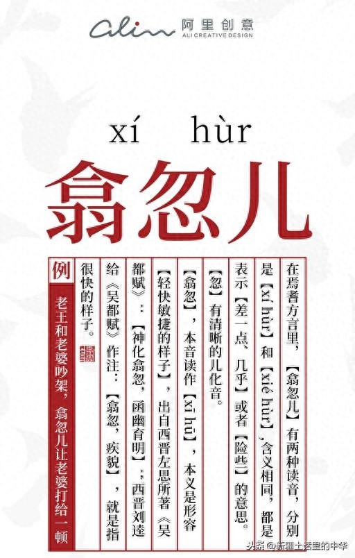 “翕忽”,本音读作【xī hū】,本义是形容“轻快敏捷的样子”,出自西晋左思所著《吴都赋》:“神化翕忽,函幽育明” ;西晋刘逵给《吴都赋》作注:“翕忽,疾貌” ,就是指很快的样子;关于“翕忽”一词,最知名的应该就是唐宋八大家之一的柳宗元所写的《小石潭记》,“潭中鱼可百许头,皆若空游无所依。日光下澈,影布石上,佁然不动;俶尔远逝,往来翕忽。似与游者相乐。”这是中学语文课本里规定必须背诵的篇目。