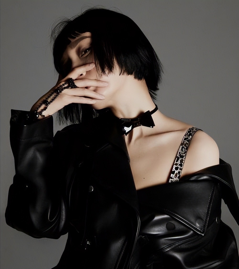 杨幂时尚尽显:黑色搭配短发造型大片,六张照片彰显凌厉气场