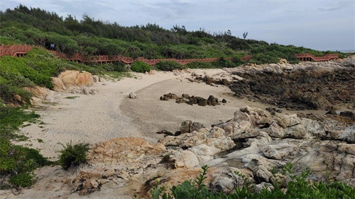 棋子湾长20多公里,多数海岸奇峰林立,怪石嶙峋,海边还有很多野生仙人掌。