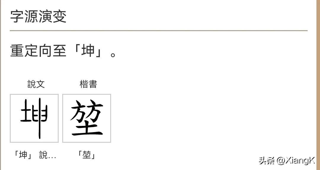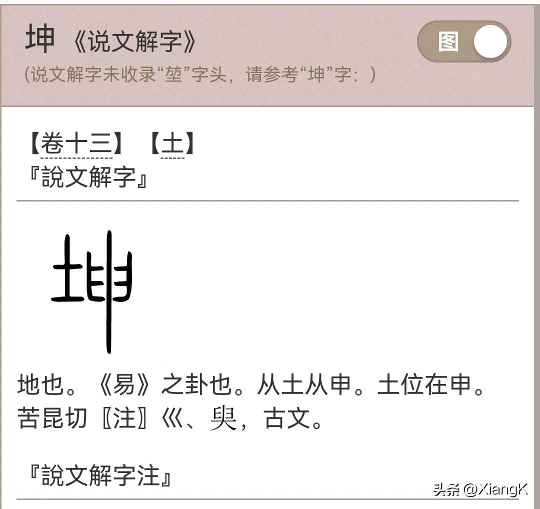 历史上,“堃”是“坤”的古字写法。当我翻开《正字通》和《字汇》时,发现这两本字典都将“堃”解读为古代的“坤”字。