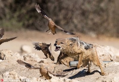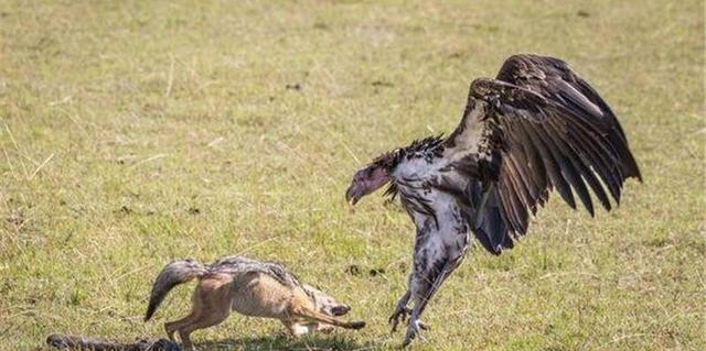 就算遇到秃鹫在胡狼口中抢夺食物,也要保护自己的食物。