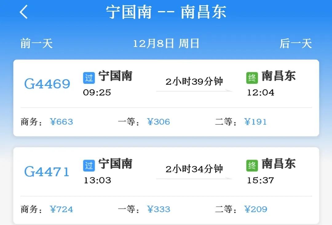 宁国到南昌只有两趟高铁,一趟是12月满月开行的G4469次,另一趟就是这趟周末线G4471次。