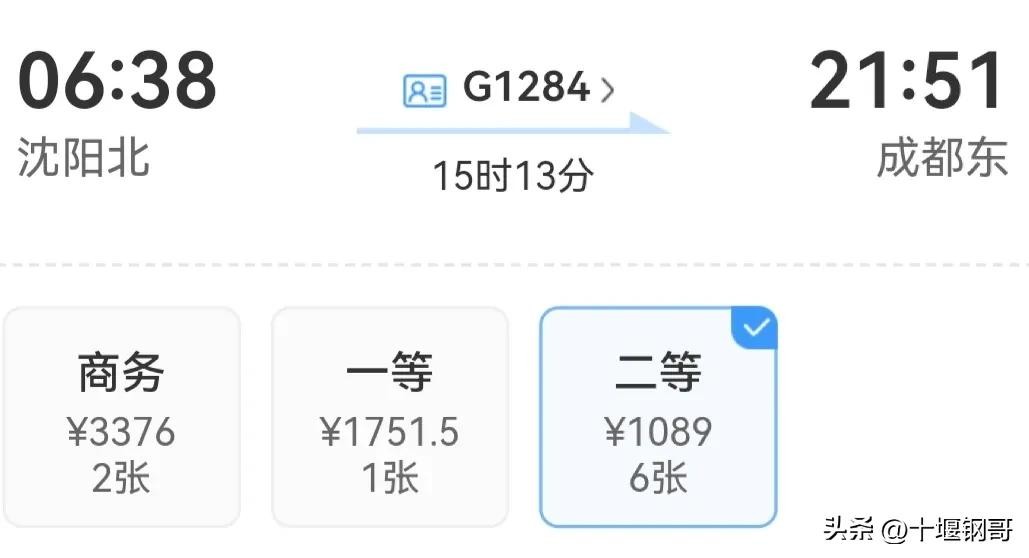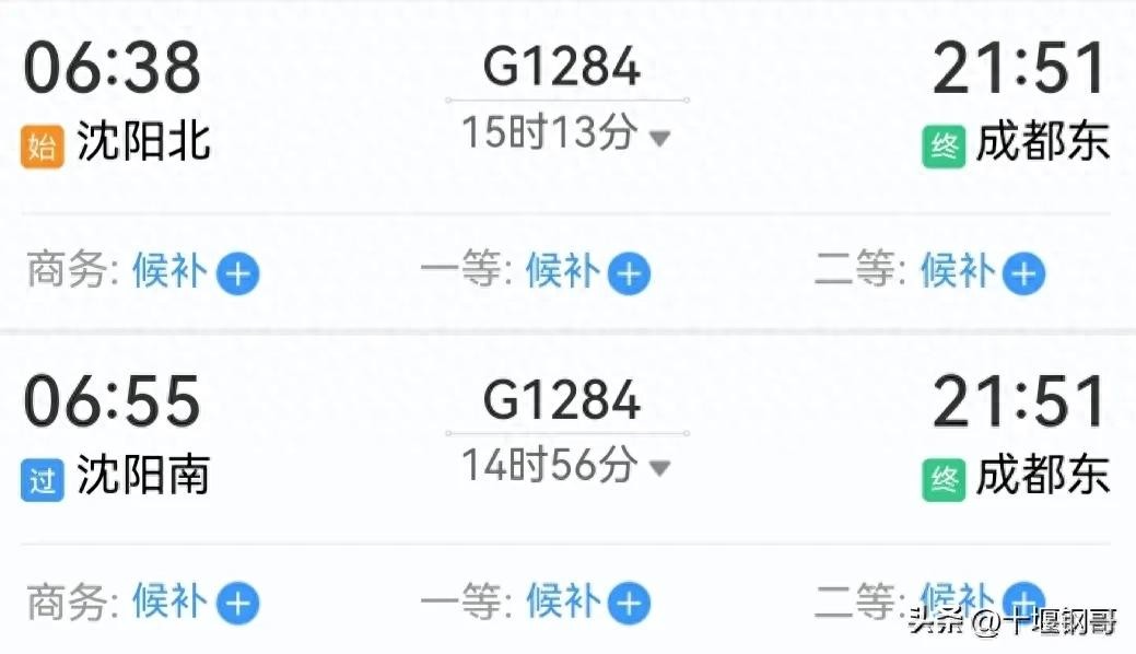 沈阳北到成都东G1284次高铁全程才2636公里为啥要运行15小时13分
