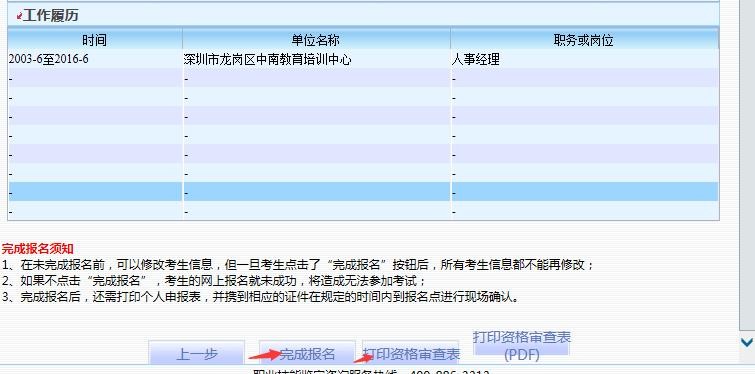十二、核对个人信息(务必信息准确)→完成报名→打印资格审查表(一旦点击完成报名,即无法更改信息)
