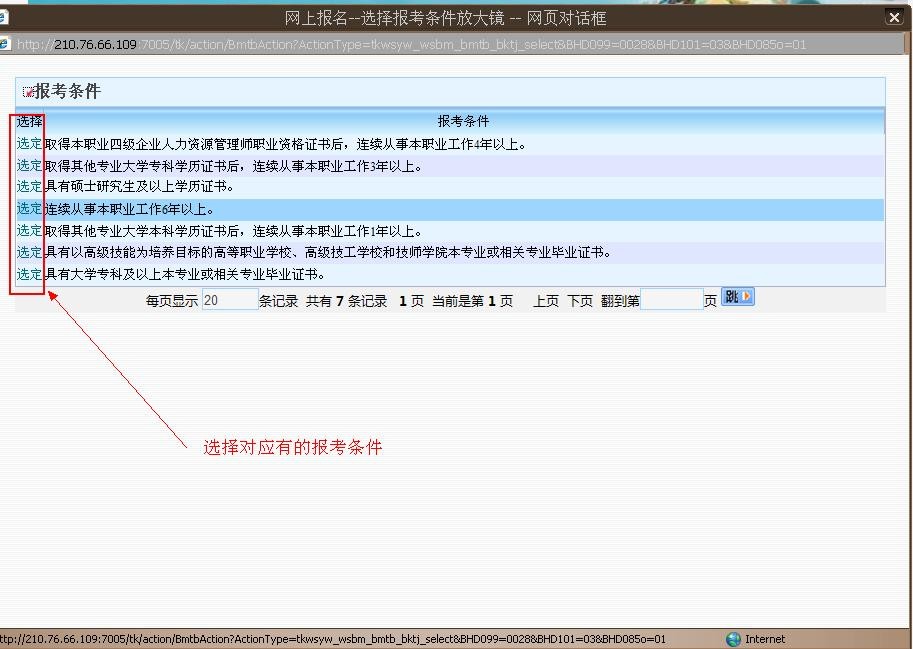六、选择申报级别(选择"申报级别"→点击"放大镜",选择报考条件)