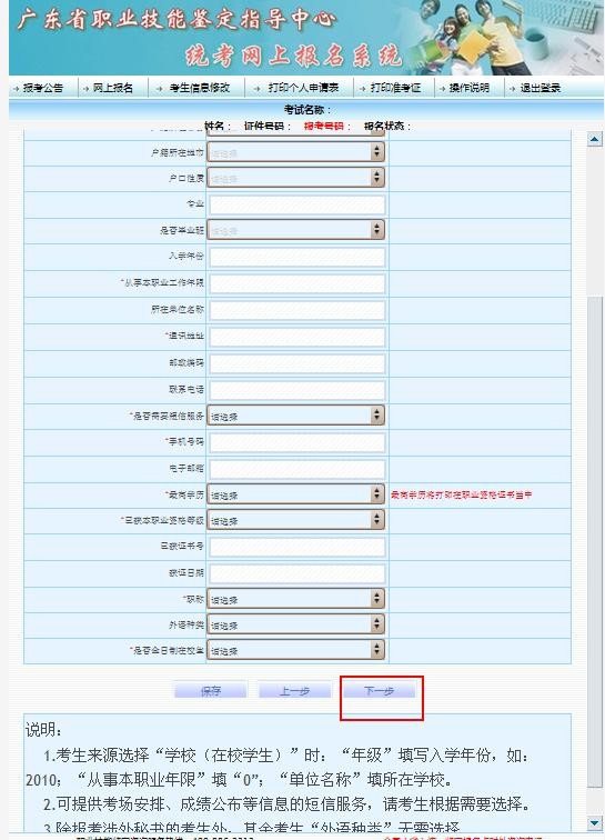5、 填写资料(带*号的项目全部以自己实际填写→保存→下一步)