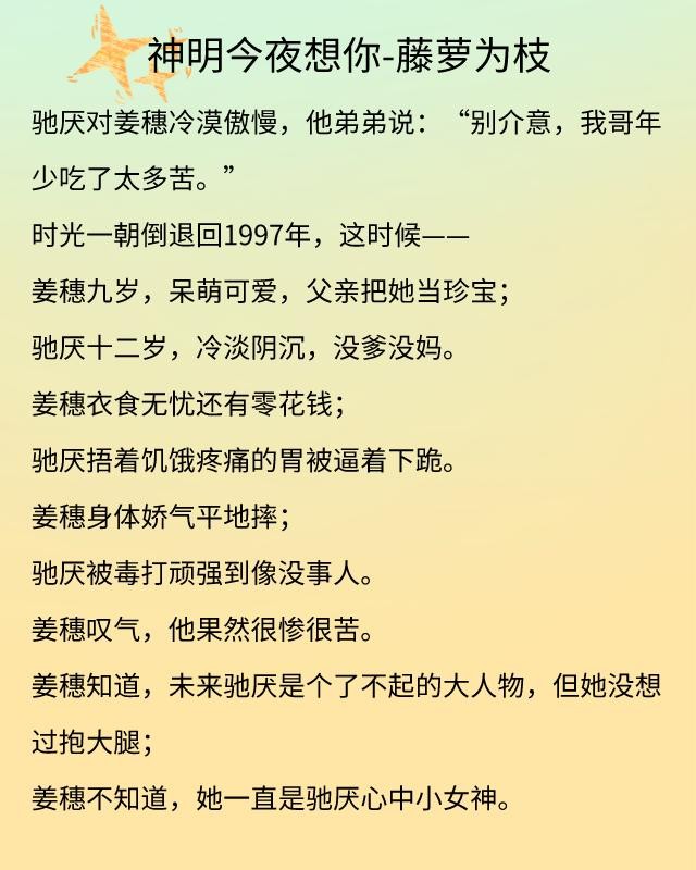 《神明今夜想你》讲述的是姜穗和驰厌的救赎爱情故事。