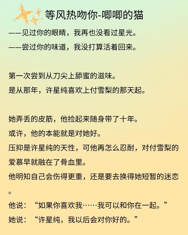 《等风热吻你》讲述的是许星纯与付雪梨的爱情故事。