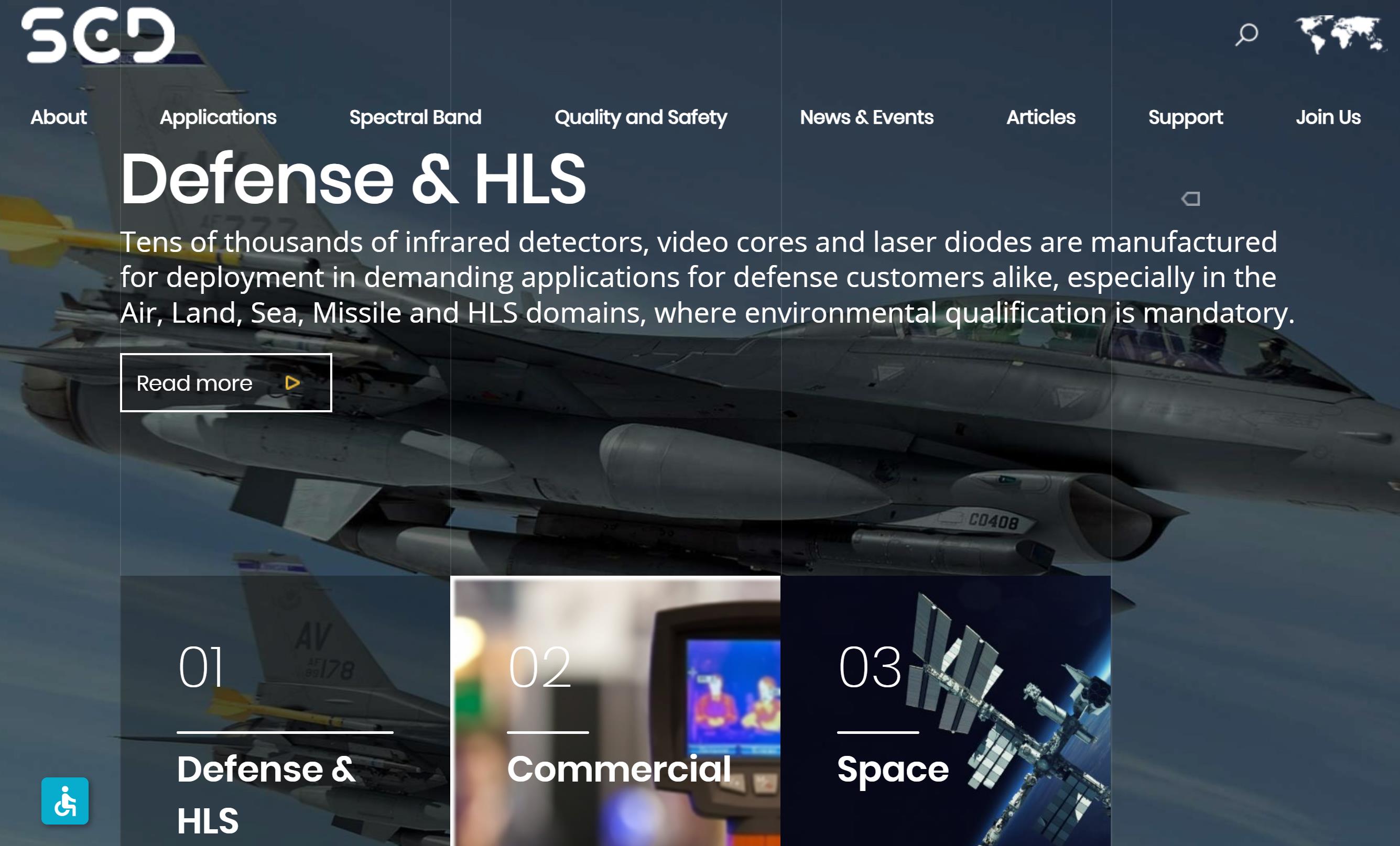 Semi Conductor Devices (SCD) 是全球领先的红外探测器和激光二极管供应商。凭借40多年积累的开发和制造经验,SCD的产品已被世界各地的领先公司选用,成为其光电系统的核心,在国防、国土安全(HLS)和商业市场。SCD 的独特功能和技术部署在其广泛的基于InSb、MCT、InGaAs、T2SL和VOx等各种传感材料的冷却和非冷却探测器中,这些探测器几乎可用于任何视频格式:QVGA、VGA、XGA、HD。SCD 提供现成的探测器和定制的解决方案,涵盖整个红外光谱:NIR、SWIR、MWIR和LWIR。
