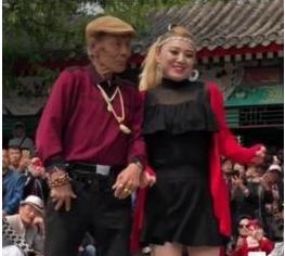这是前一阵比较红的一个网络跳舞张大爷,80多岁,跟一些女人一块跳舞,因为身体好,穿的奇形怪状,加上舞姿比较猥琐和下流,以及这些女人也是花里胡哨,花花绿绿,动作不雅而被批评,老张最后只好退出跳舞行业,其他人挽留也没用。