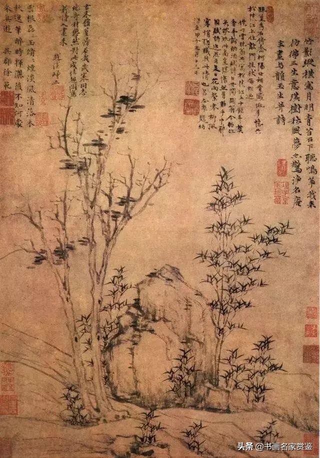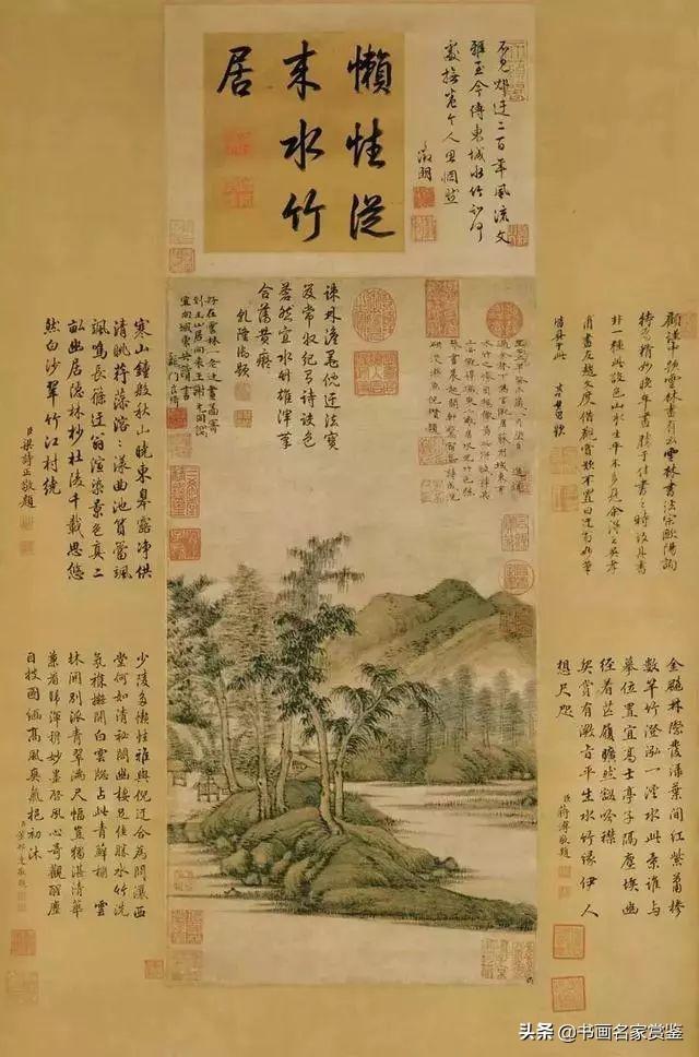 倪瓒 《水竹居图》 53.6 x 27.7cm 国家博物馆藏