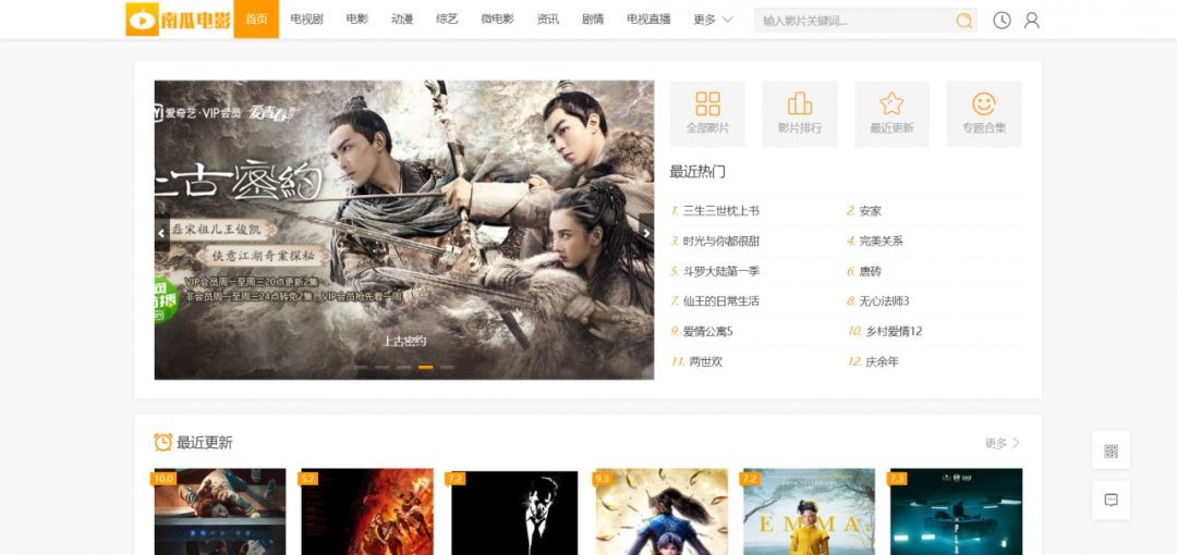 南瓜影视网页版和APP一样强大,使用无任何广告,资源一样丰富。网站资源具体包括电视剧、电影、动漫、综艺、微电影,还可以看电视直播,而且还有影视专题,最新资源更新情况,热门影视榜单,片源相当丰富,手机电脑都可使用。