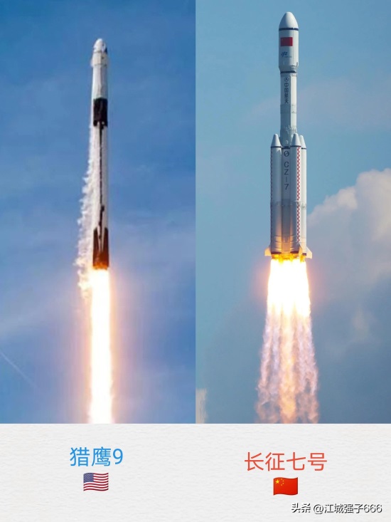 猎鹰9火箭是一个两级火箭,运载能力LEO:22吨,GTO:8.3吨,起飞质量550吨。这个运力数据在近地轨道上已经可以媲美长征五号B了(长征五号B近地轨道运力25吨),这仅仅是重型猎鹰火箭的一个光杆型,没有助推器。所以说重型猎鹰火箭就相当于三个长征五号B运载火箭的运力水平。近地轨道运力系数达4%。咱们长征七号运载火箭捆绑四个助推器和芯级,起飞质量597吨,LEO:14吨,GTO:7吨。运力系数近地轨道14/597=0.023,GTO运力系数7/597=0.012。2.3%的近地轨道运力系数只有猎鹰9的一半水平。