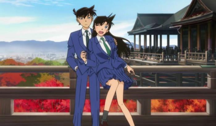 此后的小兰一直没有正面回应,或者说,没有当着工藤新一的面进行回应。直到修学旅行的清水台上,小兰用了最直白的方式回应了新一,两个人就此确定了关系,从青梅竹马变成了男女朋友。