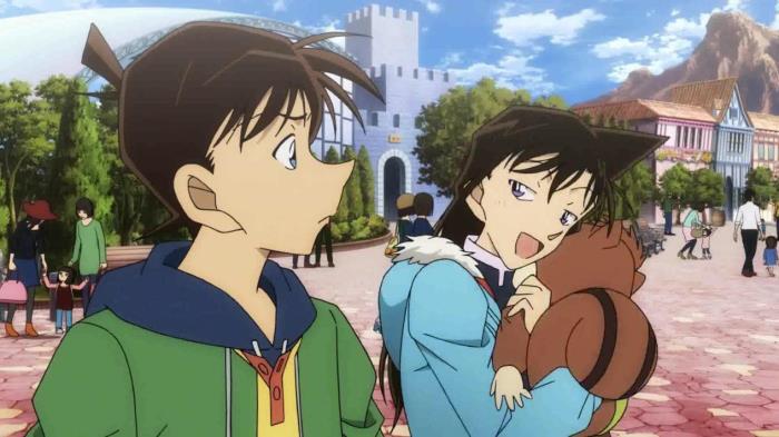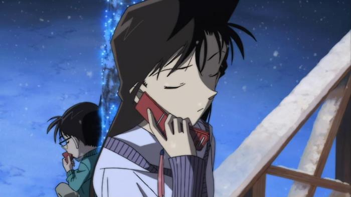 而同班的男生却故意取笑她,这个时候工藤新一站了出来,并且维护着她。以前新一总说小兰喜欢哭,叫她爱哭鬼,但是后来却表示,在自己面前哭也是可以的。