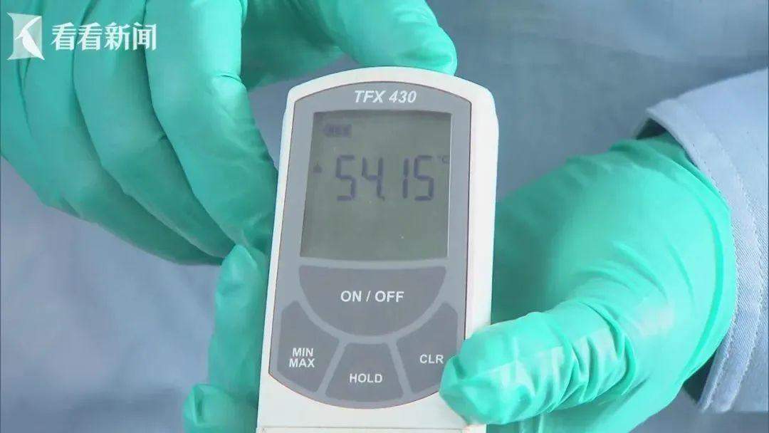 例如:氯化钙跟水误触,会瞬间放出大量的热,下图温度计显示,数值已经到达54℃。