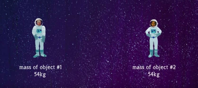为了让你更好地理解万有引力,我们来看看另外一个例子:假设有两个年轻人穿着宇航服漂浮在外太空,且远离所有行星和恒星。这时我们会发现他俩是互相吸引的。因为他们有质量,所以他们会移向对方。他们会被对方吸引,这就是万有引力!