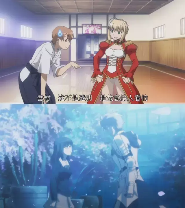 在这部动画你可以看到《Fate》、《月姬》以及其他型月世界的人物凑到一起唠嗑,也可以看到这两个系列有别于游戏动画的另外世界线故事,甚至还能看到红Saber尼禄友情串场和旧剑男亚瑟的动画PV。(不过旧剑只是个欺诈PV,动画遥遥无期,相反红Saber尼禄的动画过几个月就要上了)