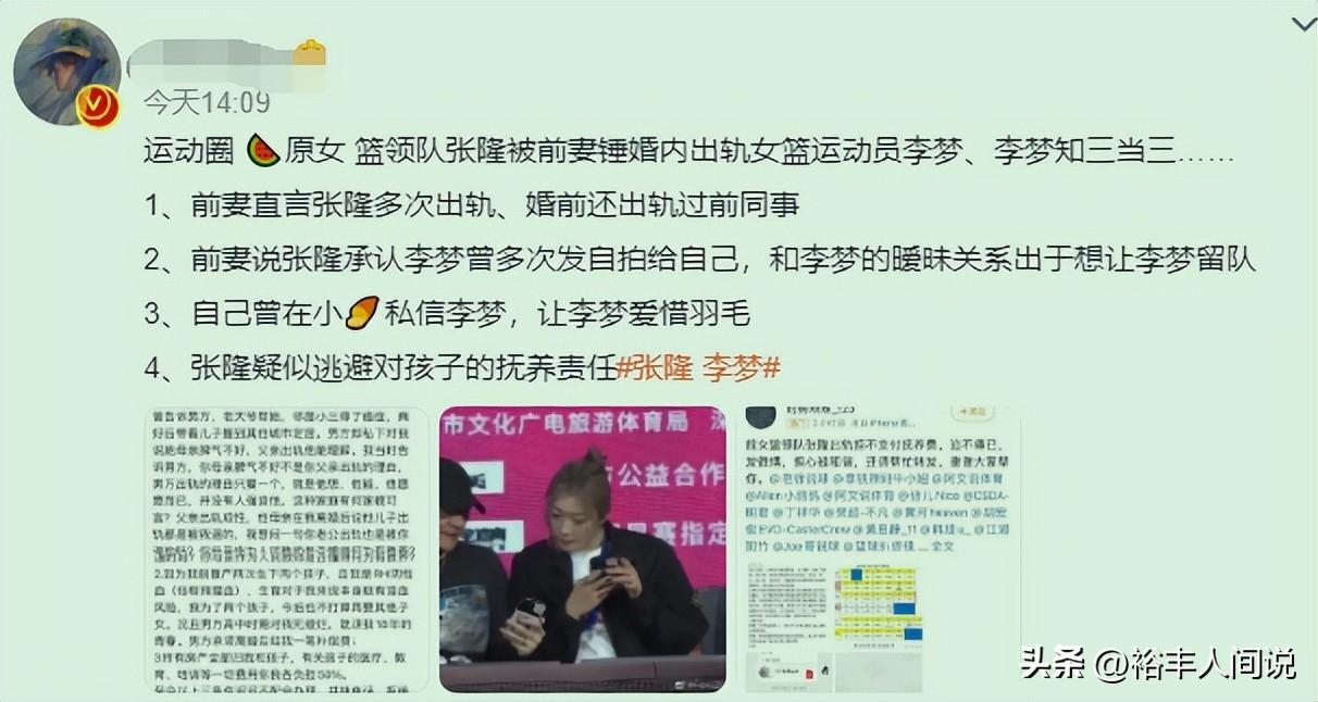 3月18号,女篮李梦与前女篮队长张隆引发热议,连带姚明也无奈登上热搜。这起婚外情事件已经不单单是体育圈的事情,更涉及到好几个单位,引发的效应绝对是前所未有。
