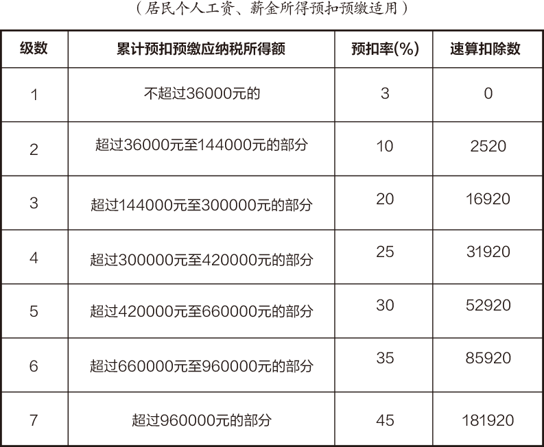 4、工资范围在17000-30000元之间(包括30000元),适用个人所得税税率为20%。