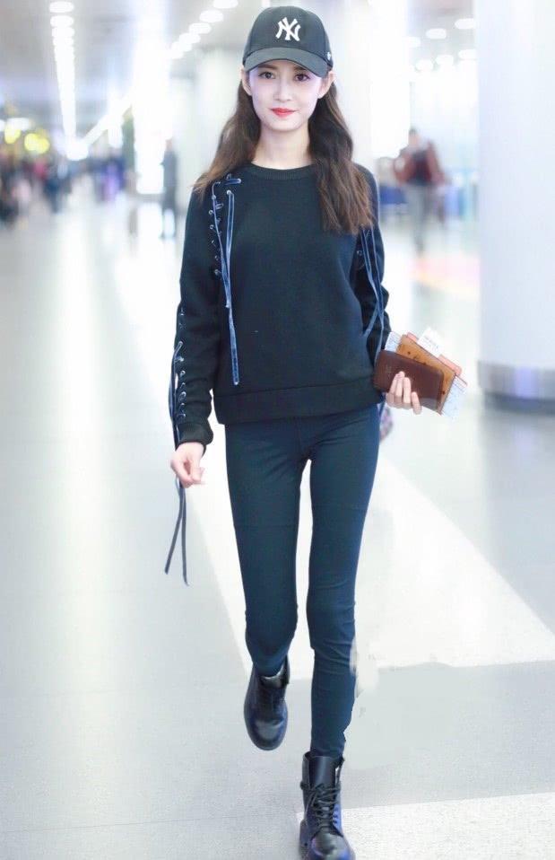 陈钰琪这次的穿搭特别吸睛,一件黑色卫衣+黑色健美裤+黑色短靴,简约而不失个性,尽显修长的身材。简约风十足的装扮,很好地秀出了一双大长腿。这种腿型特别纤细,也许很多女生都喜欢这种腿型,但小编觉得太纤瘦了,感觉有点营养不良。