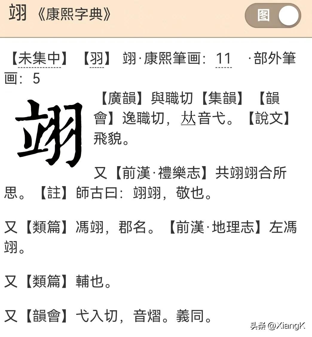 三、“翊”字《康熙字典》解释: