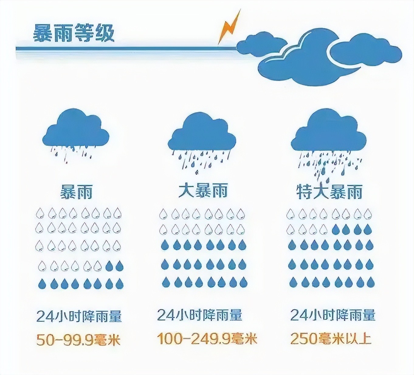 此外,在暴雨的世界里,也有强弱之分。以24小时降水量为例: