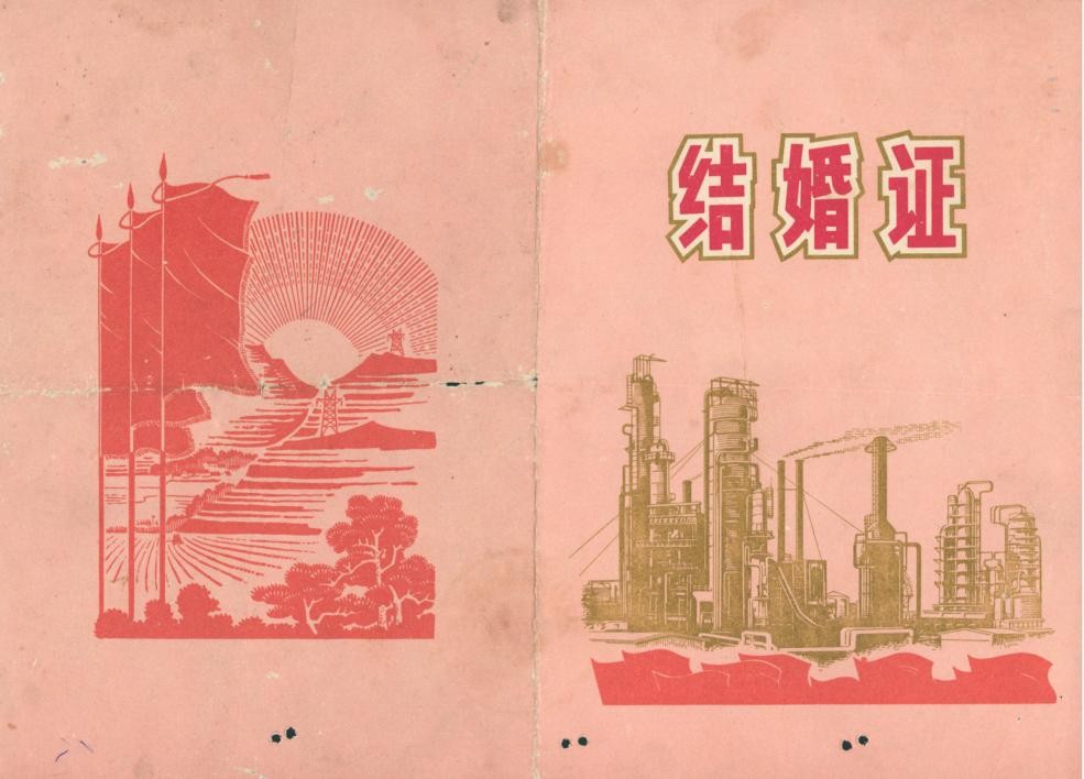 改革开放后,结婚证用途越来越广泛。为方便携带,结婚证由奖状式变为护照式,添加了双方的照片,复杂的图案、醒目的语录口号也随之取消。