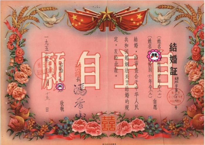 随着时代的发展,结婚凭证几度更换,见证了结婚习俗的变迁。今天将它们重新收拢到一起,再度展开细细地比较,人们会发现,在喜庆的主题下,也能找到不同时代的印记。