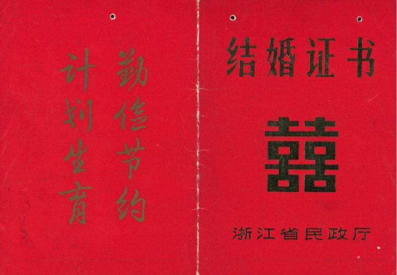 七十年代中后期,结婚证渐渐由奖状式向证书式过渡,在结婚证上通常还印有“计划生育”口号。