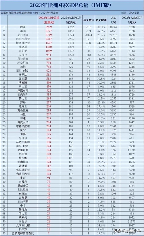 下图是IMF(国际货币基金组织)统计的2023年非洲国家GDP总量排名。可以看到,从23年起,尼日利亚的“一哥”地位就不保了!