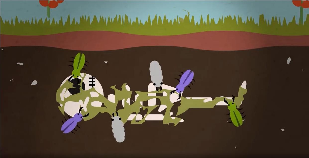 随后,尸体会在湿热环境下迅速腐败,形成恶臭毒气和病原体同时,大量蛆虫亦将对其身体进行蚕食,蚂蚁也会从多处孔隙侵入体内。