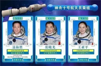 神舟十号飞船于 2013 年 6 月 11 日于酒泉卫星发射中心发射升空。返回舱于 6 于 6 月 26 号在内蒙古着陆,这次飞行员有神六飞行过的聂海胜带队,同时还有一名女飞行员王亚平,神舟十号又一次刷新,我国对航空事业的里程碑。尊定了良好的基础。
